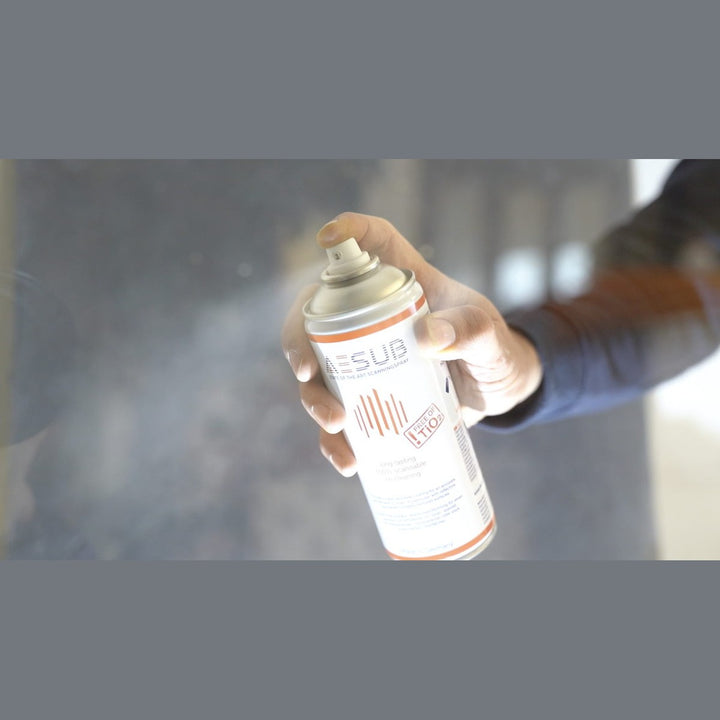 Spray: Påfør AESUB Orange fra en afstand på 15-20 cm. Spray hele den overflade, der skal scannes. Tryk på sprayhovedet og bevæg spraydåsen jævnt frem og tilbage, mens dysen er rettet mod objektet for at opnå en jævn belægning. Undgå at "ryste" dåsen.