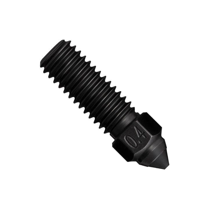 Dysene er lavet af en kobberlegering med høj varmeledningsevne på op til 330 W/m.k, hvilket sikrer en jævn opvarmning. Dysen har et volumen, der er dobbelt så stort som almindelige dyser, og understøtter høje trykhastigheder på op til 600 mm/s. En jævn nikkelbelægning reducerer filamentets vedhæftning og sikrer en glattere ekstrudering. Den hærdede stålkonstruktion tilbyder høj hårdhed, bedre slidstyrke og længere levetid. Derudover er dysen korrosionsbestandig, hvilket yderligere øger dens holdbarhed.