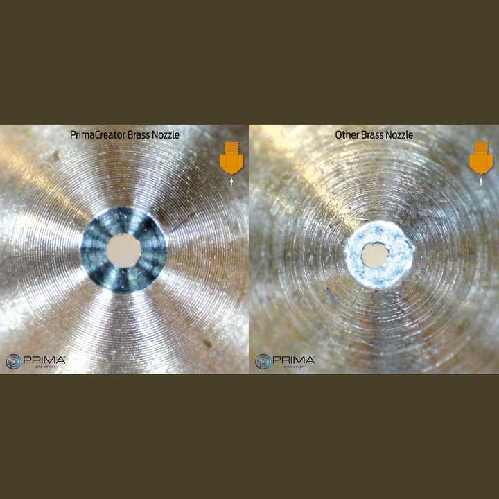 PrimaCreators premiumdyser er kendetegnet ved deres fremragende håndværk og giver dig mulighed for betydeligt at forbedre dine printresultater. Hver dyse fremstilles i en moderne fabrik af høj kvalitets messing eller stål og underkastes strenge kvalitetskontroller.