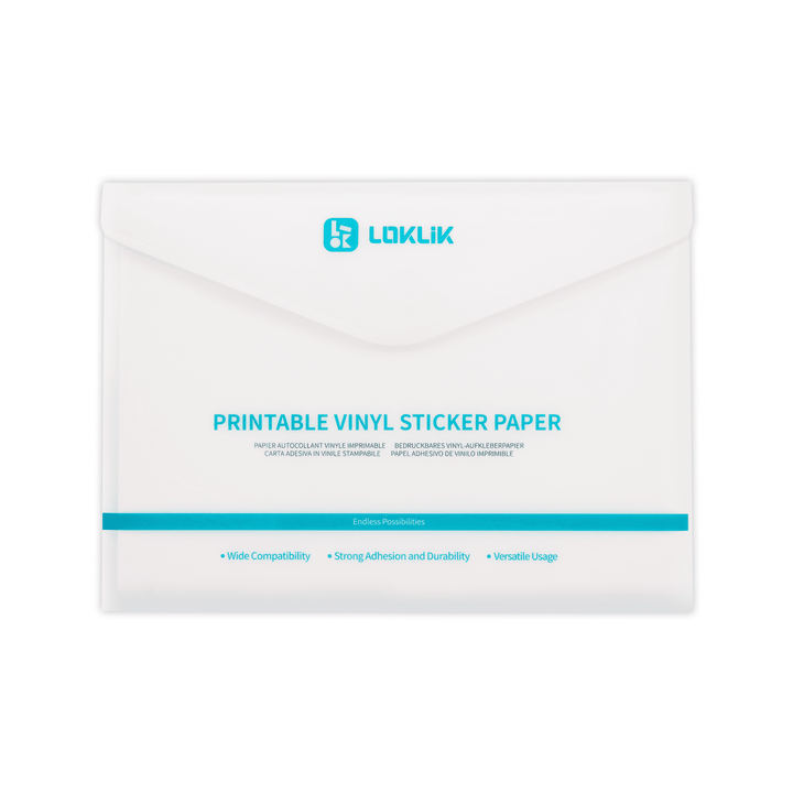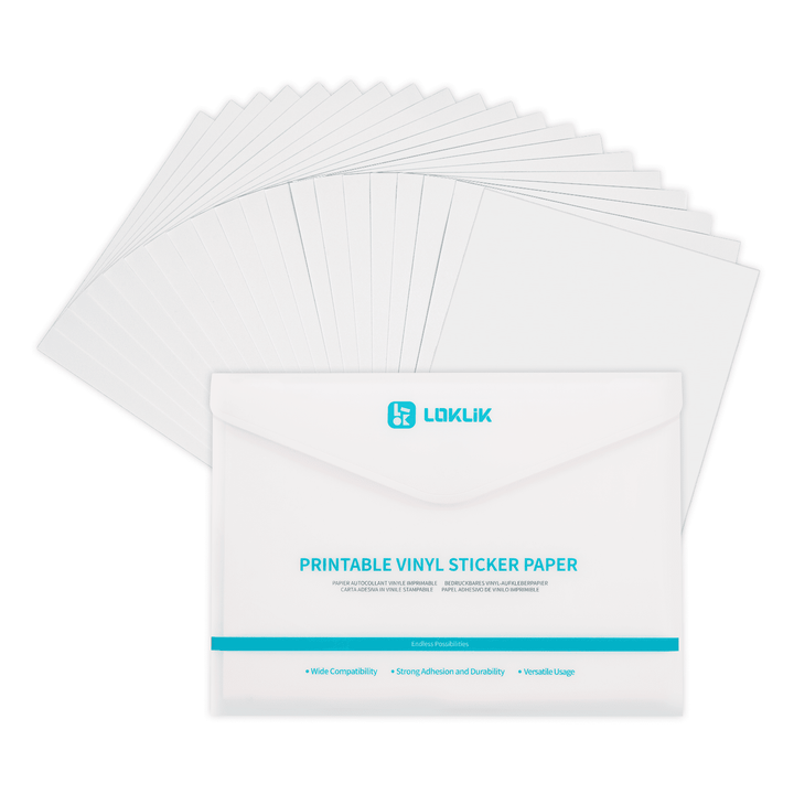 Mat vinyl klisterpapir A4 – 20 ark til selv at printe med blækstråleprintere. Design individuelle klistermærker, etiketter og kreative designs, der er lette at klippe til, fjerne og sætte på.