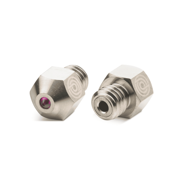 Alle Ruby-dyser fra PrimaCreator er lavet af højkvalitets, nikkebelagt kobber og er udstyret med en ægte rubintip. De fremstilles i en topmoderne fabrik med en tolerance på mindre end ± 0,01 mm, hvilket resulterer i en glat og klar overflade ved ekstrudering og dermed bedre printresultater.