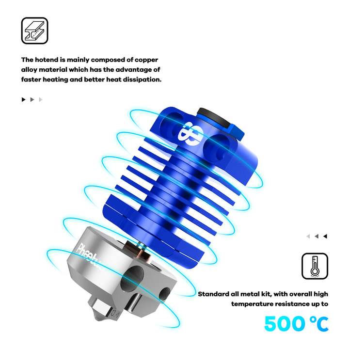 Opdag Phaetus Dragonfly Hot-End BMS, et avanceret hotend designet til ultimativ ydeevne og alsidighed inden for 3D-printteknologi. Med en imponerende temperaturbestandighed på op til 500 ℃ er dette hotend det perfekte valg til krævende printprojekter.