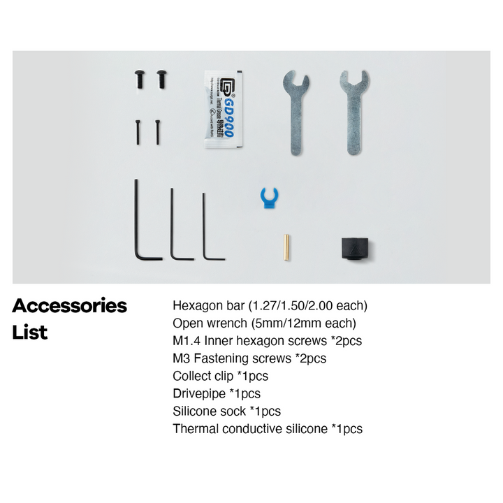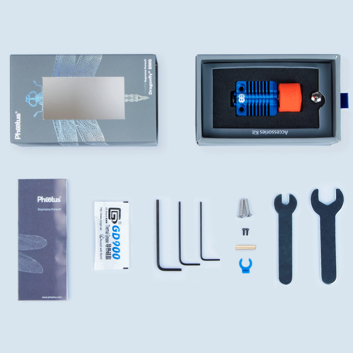 Følgende tilbehør er inkluderet i leveringsomfanget for Phaetus Dragonfly Hot-End BMS: