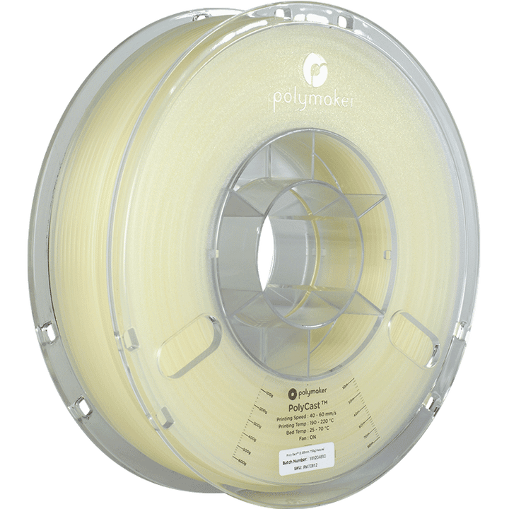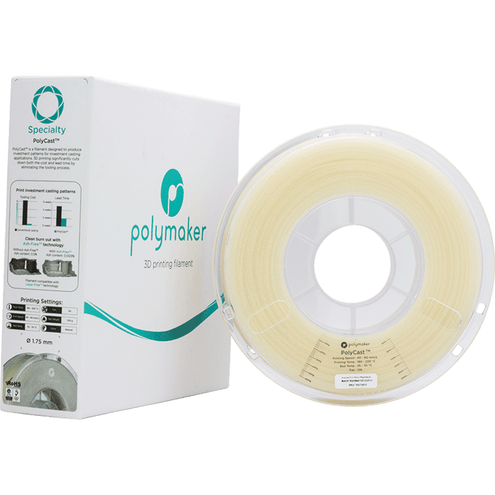PolyCast™ fra Polymaker er et specialfilament, der er specielt udviklet til finstøbning (Investment Casting). Det muliggør direkte fremstilling af støbeforme i 3D-print og reducerer dermed værktøjsomkostninger og produktionstid betydeligt.