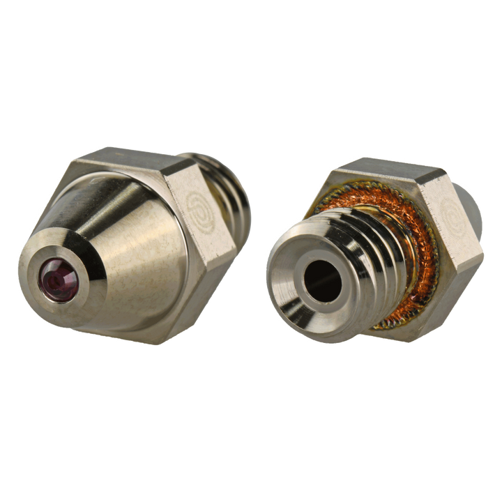 Alle Ruby-dyser fra PrimaCreator fremstilles af det bedste højkvalitets platerede kobber med en ægte rubinspids. De produceres i en topmoderne fabrik, hvor hver dyse fremstilles med en tolerance på mindre end ± 0,01 mm. Dette sikrer en meget glat og klar overflade ved ekstrudering, hvilket fører til bedre printresultater.