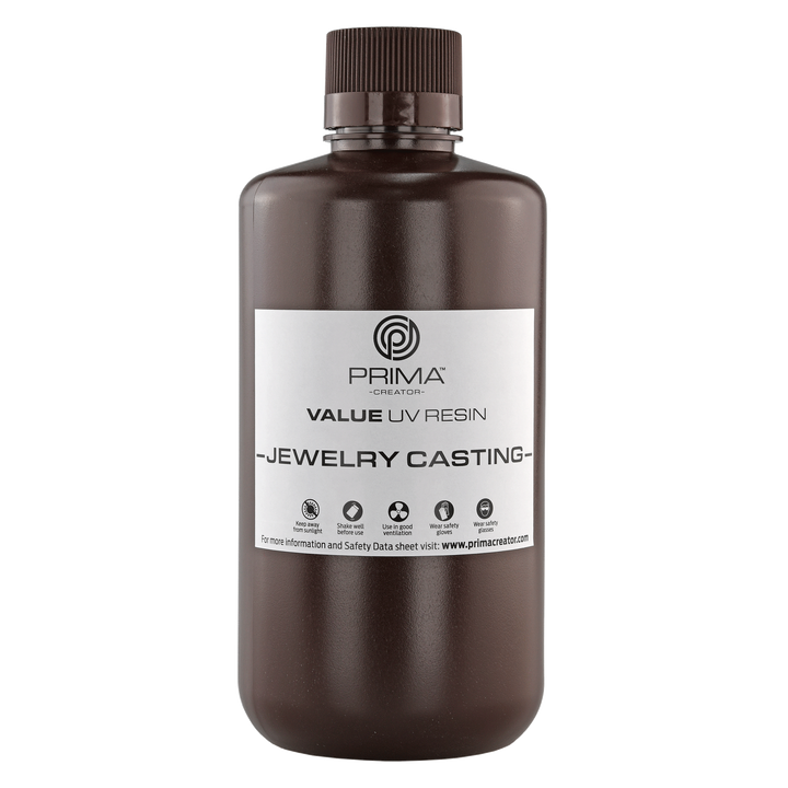 Den PrimaCreator Value Smykkestøberesin er specielt udviklet til smykkefremstilling og imponerer med nem håndtering, no-ash forbrændingsegenskaber, lav krympning og evnen til præcist at gengive de fineste detaljer. Den er derfor det ideelle valg til detaljerede smykkedele som ringe, vedhæng eller prototyper.