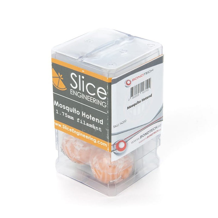 I januar 2020 udgav Slice Engineering en helt ny version af Mosquito™! Denne nye version inkluderer en revideret Heat Break og en Heat Sink med innovative funktioner. Den nye Heat Break har en forstærket hals og en redesignet køler for at forhindre skader under installation eller reparationer. Den er også udstyret med den samme WS2 anti-klæbe-belægning, som også bruges på vores Vanadium™ dyser, for yderligere at forbedre ydeevnen med PLA. Den nye Heat Sink har en bredere åbning til filamentvejen for bedre at kunne håndtere splejset filament fra multi-materiale setups som Prusa MMU eller Mosaic Palette.